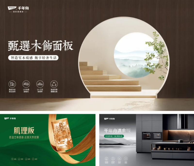 千年舟深植于木文化的沃壤之中,將傳統文化精髓融入板材,推動品質與個性化表達,讓風尚美學走進千家萬戶。