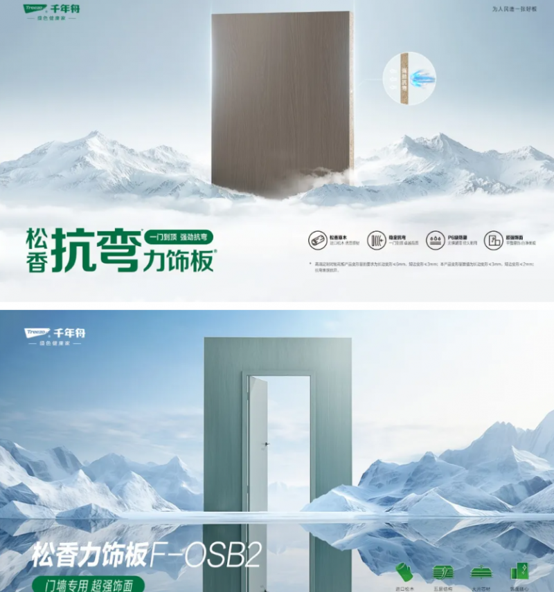 針對高濕度環境,尤其是南方和沿海地區生活中常見的潮濕難題,導致的板材變形和發霉,千年舟推出了多種適用于廚房、衛生間、地下室等潮濕區域的板材,如耐潮紙面石膏板和耐水紙面石膏板,兼具抗菌、阻燃、抗彎等特性的實木切片OSB板、新型難燃OSB板等,2024推出的松香力飾板F-OSB2、松香抗彎力飾板等產品,實力更強,進一步確保家具的穩定性和使用壽命,贏得了市場的認可和消費者的喜愛。