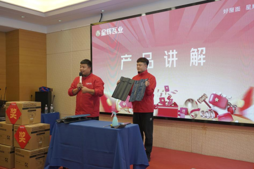 緊接著,星輝瓦業(yè)動銷組長韓超為現(xiàn)場來賓帶來一系列全面、深入且生動的產(chǎn)品講解,同時也分享了品牌在屋面瓦領(lǐng)域的獨家技術(shù),從鐵礦石的創(chuàng)新應(yīng)用,到釉面自潔工藝的運用,讓大家對星輝瓦業(yè)的產(chǎn)品有了更全面和更清晰的認知。
