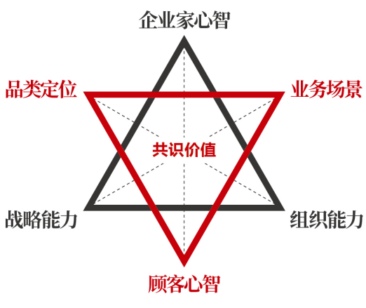 正和島:我注意到深維度的咨詢模型中,有一個戰略六邊形結構,其中內經營三角形將“企業家心智”置于頂端,這一設計讓我深受觸動。以往評估企業時,往往聚焦于戰略、組織、產品等方面,而此模型卻將企業家心智視為核心,請問這一考量背后的原因是什么?