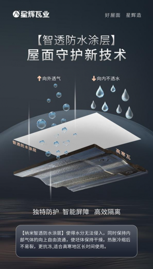 此外,高寒瓦還采用了獨特的“屋面守護(hù)新技術(shù)”,能夠有效阻隔并快速排出水汽,進(jìn)一步提升抗凍性能。