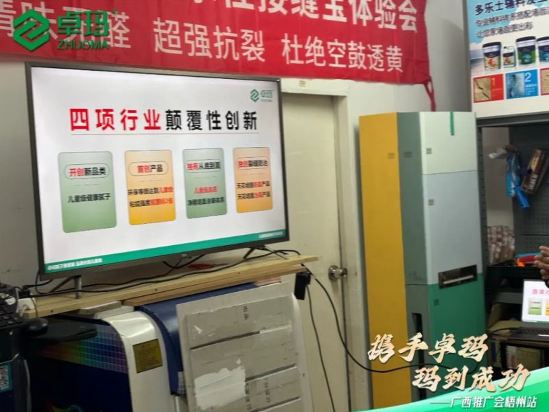 隨后,楊經理分享了卓瑪在行業的四大顛覆性創新,并詳細介紹了卓瑪獨創天花墻面防裂、治裂產品,對天花和墻面容易出現裂縫的難題,這些產品憑借特殊的配方和工藝,能夠有效預防裂縫產生,并對已有的裂縫進行修復處理,為消費者打造持久美觀的墻面,進一步彰顯了卓瑪在墻面材料領域的創新實力與對消費者需求的精準把握。