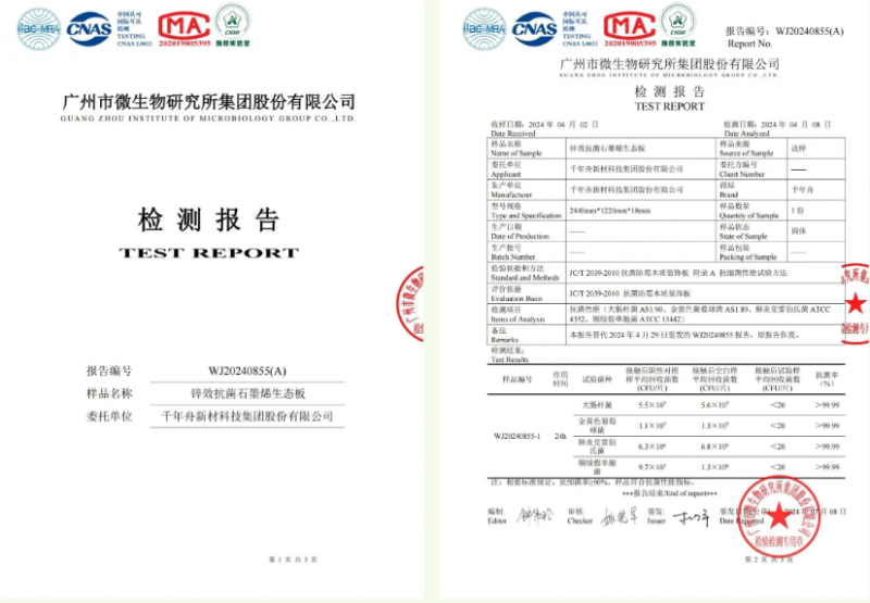 科技創(chuàng)新是千年舟踐行綠色發(fā)展的重要驅(qū)動力,千年舟不斷加大在科研上的投入,與多家科研機構(gòu)達成深度合作,將前沿科技融入產(chǎn)品研發(fā),其中,備受矚目的“六邊形戰(zhàn)士”石墨烯黑金板(六維鋅效抗菌石墨烯生態(tài)板)便是千年舟科技創(chuàng)新的杰出成果。