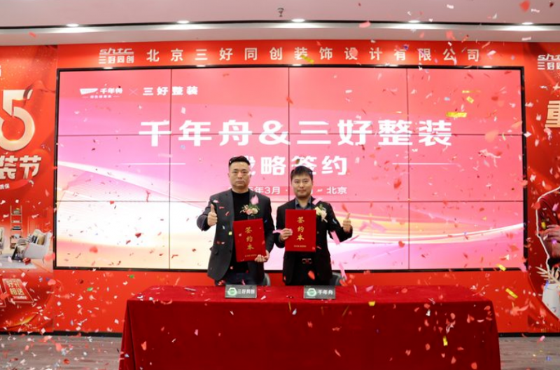 正如雙方領導在簽約儀式上強調:"這不是簡單的商業合作,而是一場關乎人居健康的產業革命。"通過整合環保材料與健康整裝優勢,雙方將構建"基材+工藝"雙重防護體系,為消費者打造更安全的家居環境,同時為行業樹立"環保科技+健康服務"的品質標桿,千年舟與三好整裝將以科技為引領,以健康為底色,共同構建健康家居新生態,為消費者創造更安全、更舒適的居住環境,為行業發展注入新動能。
