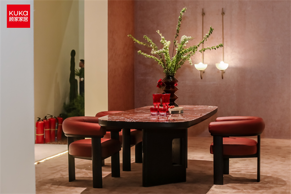 除此之外,此次顧家重磅展出的收藏品級「奢石系列PT3282餐桌」是客餐廳的另一大亮點產品,彰顯出高端家庭的儀式感社交場。紫羅紅石材源自天然,色澤瑰麗,紋理細膩,象征繁榮與昌盛;厚重木紋面托板穩固承托并保護桌面,圓潤邊角設計搭配設計感底座,釋放獨一無二的奢美質感。
