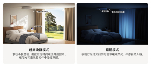 可與家中其他智能設(shè)備聯(lián)動(dòng),如“起床模式”自動(dòng)拉開(kāi)窗簾,“觀影模式”同步關(guān)閉燈光與窗簾;