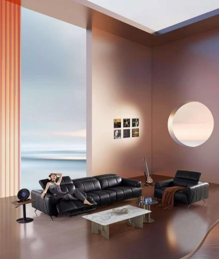 KG.172赫茲沙發不僅是一款功能型產品,更是一件藝術品。其設計靈感源于“城市節奏”與“靈魂共鳴”,外觀采用鋼琴鍵造型,通過方正體態與起伏線條的對比,營造出“音符跳躍”的視覺韻律。V型外沿坐墊設計則巧妙平衡了功能與美學——躺位閉合時整體造型簡約大氣;展開時外拓空間,打破邊框束縛,釋放更多可能性。