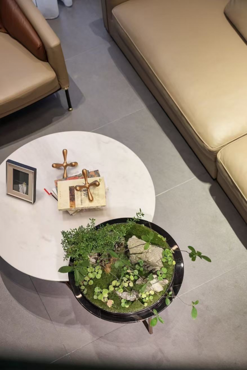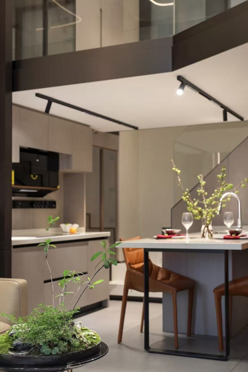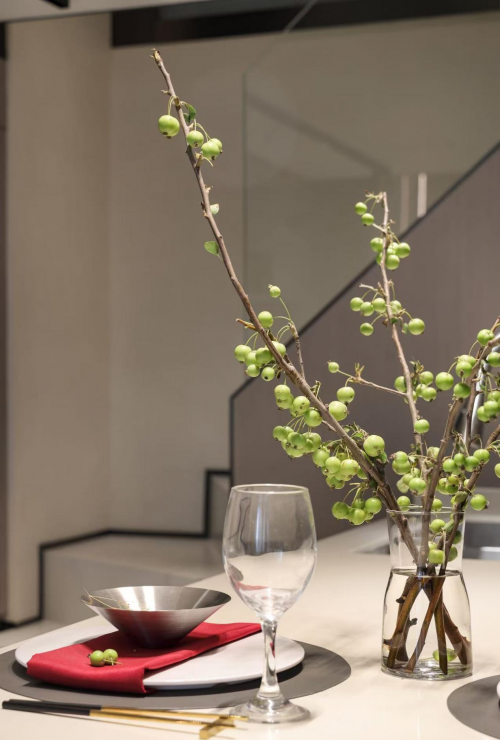 家的眷戀在此流動,索性放棄一切突兀繁復的修飾,生于自然的理石紋路會為空間帶來故事,桌邊的盈盈綠植,會讓我們重新感受生命的本意。
