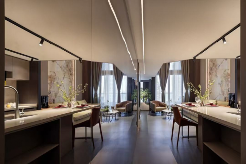 方隅之間,自成天地。在本案的營造中,設計師將業主的居住理想,物質和精神富足積淀而成的品味修養,以及對家的情感和對租戶的善意與祝?;没蔁o數閃光的生活片段,在這森羅萬象里,穿透夜的濃霧,擁抱每個風塵仆仆的歸家人。
