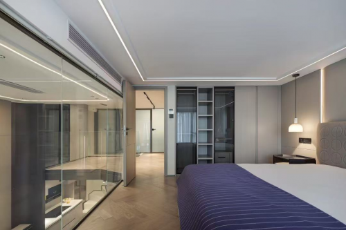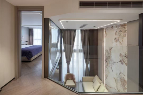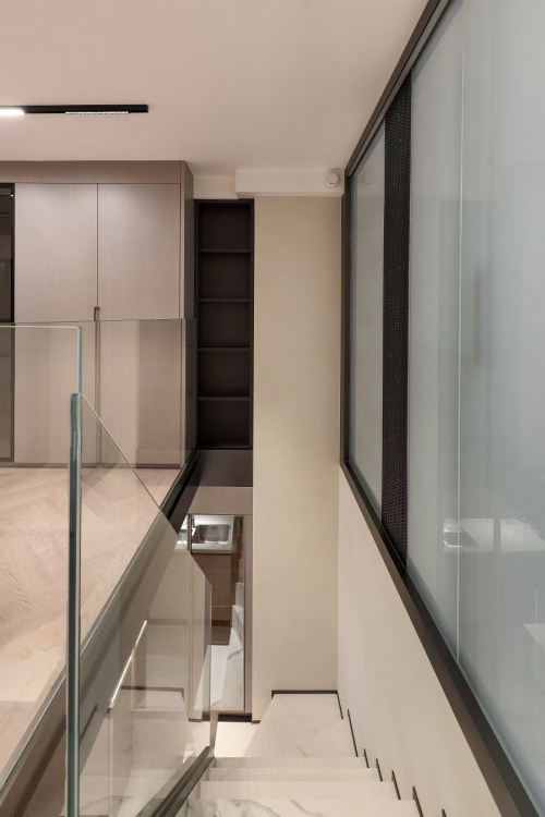 巧妙的玻璃房設計,洞察居者心向往之的浪漫主義,改善小戶型復式空間帶來的沉悶、昏暗和視線擁堵,一切美好生活,睜眼即見。