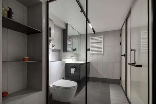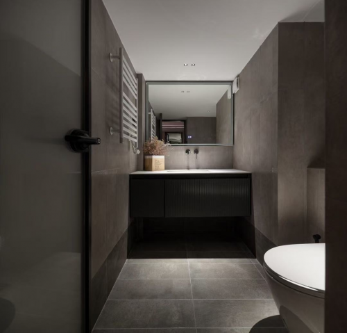主客衛入目即是極簡大氣的黑白色系,充足的收納,通透的空間,讓一切井然有序。簡潔的裝飾和舒適的照明,在滿足私密需求的同時,營造寧靜放松的氛圍。
