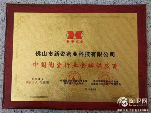 熊曉峰:近三年以來,新瓷窯業(yè)先后斬獲“中國陶瓷行業(yè)金牌供應商”、中國陶瓷工業(yè)協(xié)會“節(jié)能窯爐標桿企業(yè)”、“陶瓷裝備技術(shù)革新金獎”等權(quán)威榮譽。