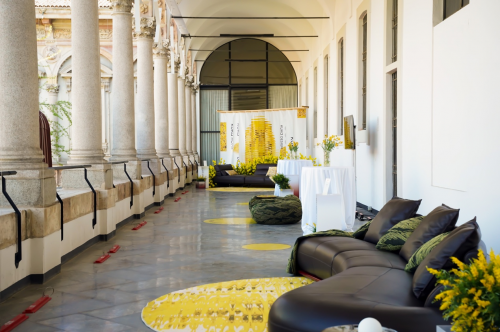光合機構陳耀光創作的裝置作品《禮物》,以意大利的金雀花、中國的迎春花和連翹花等春天花卉為素材編織的圓形花田煥發出勃勃生機,讓暢游其間的參觀者感受自然的饋贈。而不銹鋼鏡面折射的參觀者、米蘭大學建筑群以及自然景觀將人代入一場陳耀光所說的“預謀的劇場”,在“家-天-地”的東方哲思中感受再創造的魅力。作品中可伸縮的陽光雨露機械裝置成為點亮《禮物》蛋糕的“蠟燭”,所帶來的交互體驗也讓人耳目一新。此外,陳耀光的這件作品還將可持續發展理念貫穿始終:裝置采用節能燈及太陽能板、再生環保地面鋪裝等制作而成,不僅所有的材料可回收再用,花卉也可以與當地周邊社區居民分享,延續生命的循環,人類對自然的友善和敬畏通過此次裝置展展現地淋漓盡致。