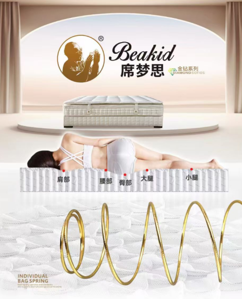 這種科學的分層設計,宛如一部精密運轉的機器,精準地調節著睡眠時的身體狀態,平衡了舒適與支撐的關系,解決了許多人長期面臨的睡眠難題。在材料的選擇上,席夢思金鉆床墊更是精益求精。