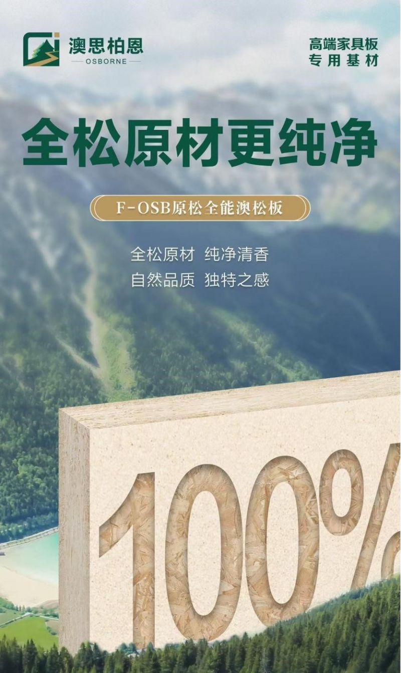 F-OSB原松全能澳松板,不僅是一張板材的升級,更是對家居產業可持續發展的技術應答。從優質松林到智能工廠,從檢測數據到真實場景,澳思柏恩以材料科學重構空間美學,讓每一張板都成為承載健康生活的可靠承諾。