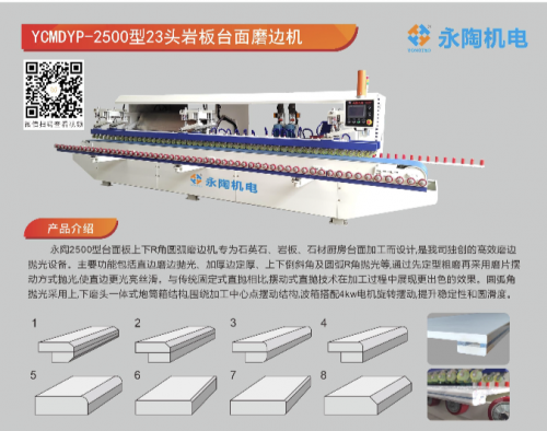 馬總宜:永陶機電是一家專業生產陶瓷、石材深加工設備的廠家,主要產品涵蓋圓弧拋光機、圓弧線條拋光機、前后刀數控陶瓷切割機、石材線條拋光機、石材直邊拋光機、石材拋邊拋底機、石材拋面拋邊機、巖板加工設備(如巖板45度倒角機、數控巖板智能橋切機),以及石英石加工設備等(如石英石單邊小樣塊磨邊倒角機、3頭石英石刮平定厚磨平機)。
