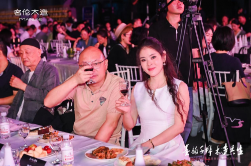 臨沂市木業協會會長/山東省安信木業集團董事長宋剛;臨沂市濟寧商會會長/山東安信木業集團總經理黃國星;山東安信木業集團副總/名倫木造總經理、合伙人谷光平;名倫木造副總經理宋佳凝,共同登臺為大家致辭祝酒。