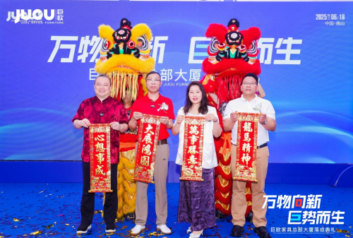 萬物向新,巨勢而生。2025年6月18日,時值仲夏之初,在充滿希冀與活力的鎏金時節,在飽含喜悅與期待的美好時刻,伴隨著禮炮齊鳴與掌聲雷動,巨歐家具集團總部大廈落成典禮在朝陽映照下的城市新地標處璀璨啟幕。