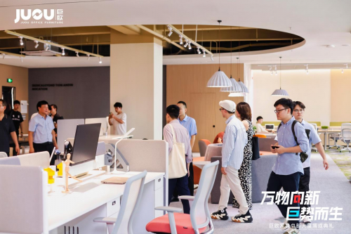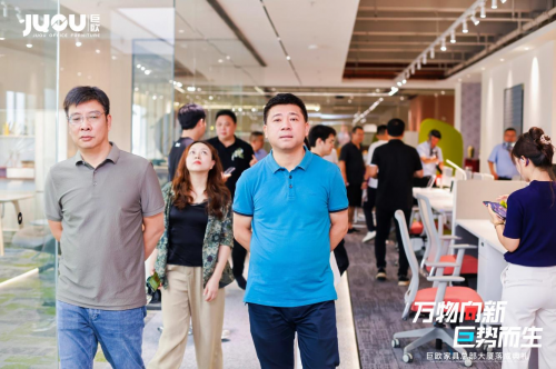 典禮結束后,與會嘉賓在董事長王永輝、副總經理王俊及所有巨歐家具工作人員的帶領下,前往巨歐家具集團總部大廈展廳,從1樓到9樓,分別對辦公家具、醫養家具、學校家具、公寓家具等,進行學習、參觀和交流。