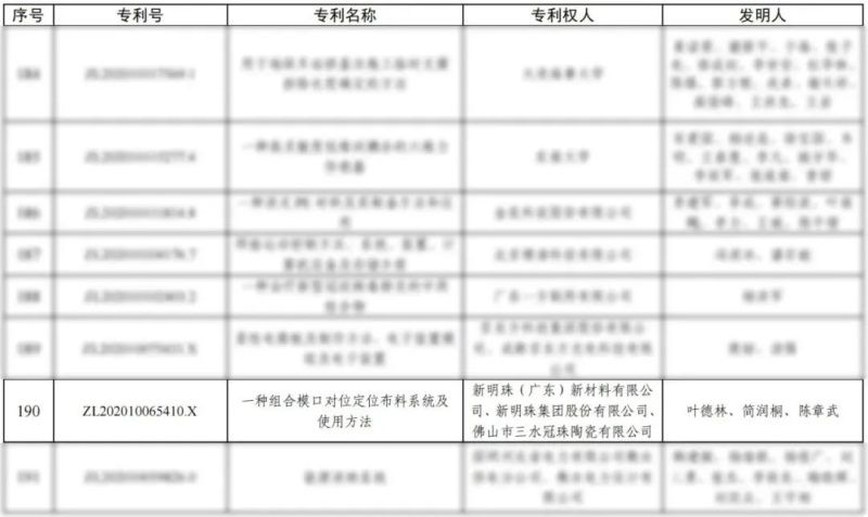 近日,國家知識產權局正式公布《關于第二十五屆中國專利獎授獎的決定》(國知發運字〔2025〕20號),冠珠瓷磚(新明珠集團)的發明專利《一種組合模口對位定位布料系統及使用方法》赫然在列,榮獲中國專利優秀獎。