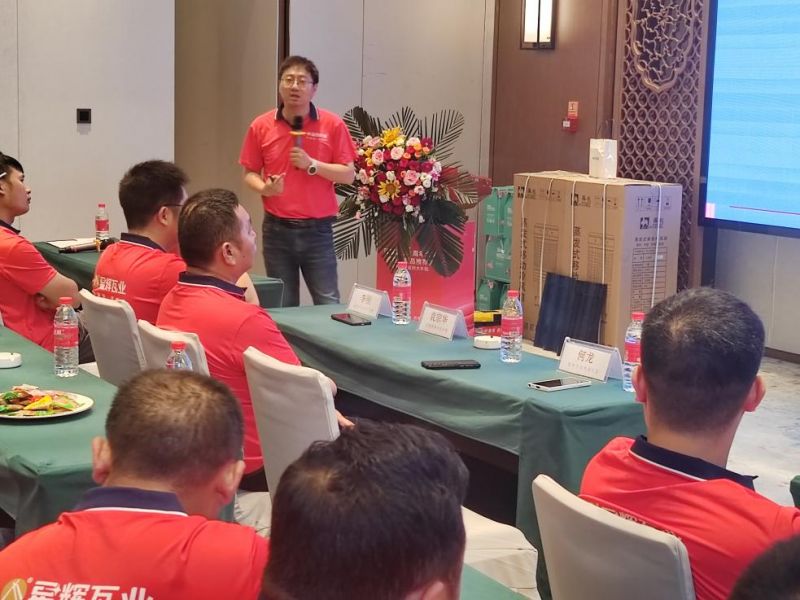 在嘉賓們的精彩致辭后,便進入了產品介紹環節。星輝瓦業動銷經理何龍何經理介紹了星輝瓦業合金產品的差異化優勢,以及在行業內的卓越地位,全方位展現出產品實力。