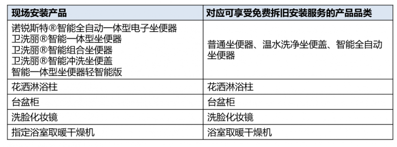 3)享受免費拆舊安裝服務的產品品類需與購買及現場安裝的產品品類對應