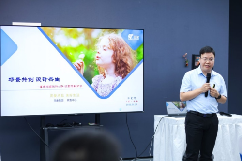 圣象集團研發中心孫里彬總經理以《場景共創 設計共生》為題展開深度分享,詮釋了場景驅動下的家居協同創新模式,昭示了產品、設計與場景以有機鏈接相互賦能,深度融合的邏輯。