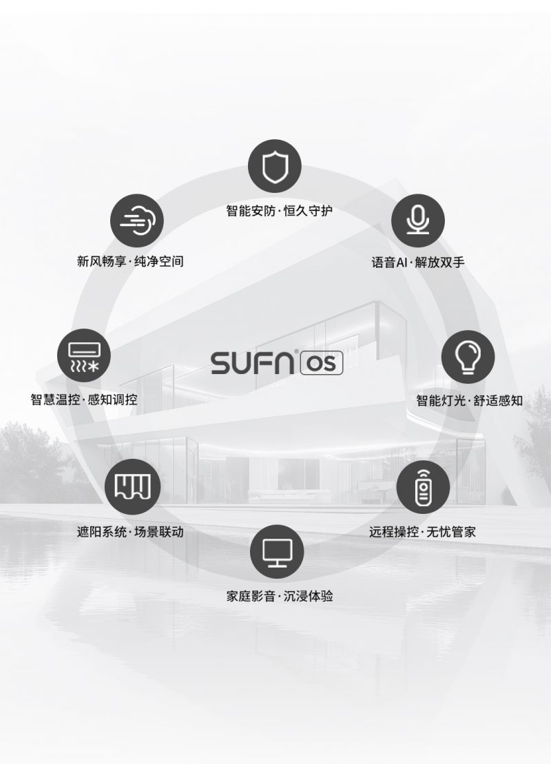 本次展會,三峰照明以“科技+美學”打造沉浸式智慧生活體驗,SUFN OS智能家居系統圍繞全屋智能家居全場景應用,通過添悅智能控制面板,以多合一模塊化的設計,覆蓋全屋智能家居調光、情景、遮陽、影音、新風、地暖、空調、安防八大模塊,重新定義別墅大宅全屋智能產品體驗。