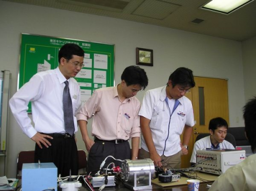 (菜農與變頻工程師一起轉化東芝核心技術。菜農(左一))