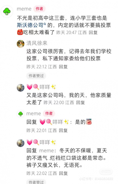 監(jiān)管失效:統一需求催生“地攤校服”“后備箱校服”等仿冒品,甚至都無“仿冒”可言,長得一樣都稱之為“校服”,都可以銷售。線上銷售隱蔽性加劇追溯難度,2024年深圳雖推質量監(jiān)管碼,但在分散的銷售網絡中形同虛設。