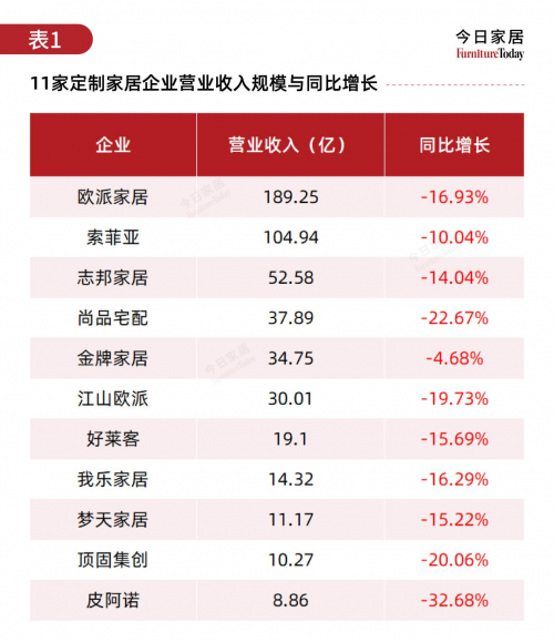 不過,市場環境的變化正引發行業格局的顯著轉變。2024年年報數據顯示,11 家上市定制家居企業營收全面下滑,其中皮阿諾降幅最大,達32.68%,營收降至 8.86億元。
