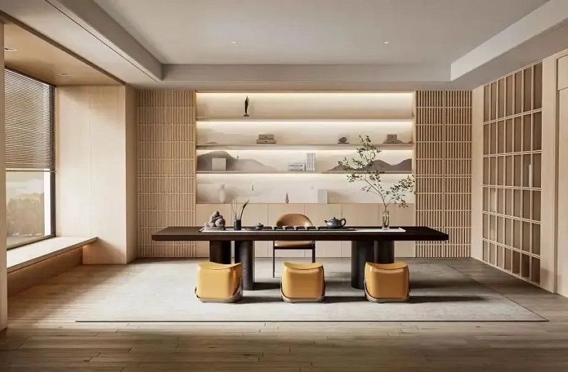 以其偏灰色調展現出自然的木紋肌理,帶來一種貼近大自然的淳樸與原始之感,同時兼具時尚氣息,營造出一個充滿寧靜與舒適的沉浸式體驗空間。