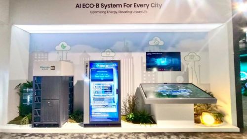 作為暖通行業的引領品牌,海信中央空調攜ECO-B智慧暖通及能源管理系統2.0以及商用多聯機S5系列頂出風空調器、AI智控屏等AI低碳矩陣亮相,全面展示綠色低碳和智能化技術方面的前沿成果,不僅能滿足家用中央空調的便捷智控需求,也能為商用場景提供空氣、能源及運維一體化解決方案。
