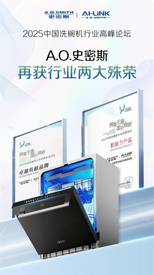 近日,廣受業界關注的“碗美無菌 國補煥新 2025中國洗碗機行業高峰論壇”于景德鎮拉開帷幕。本屆論壇是中國洗碗機消費普及活動中的重要組成部分,旨在推動行業進一步發展。在論壇現場, A.O.史密斯一舉摘得“2025中國洗碗機行業消費普及活動卓越貢獻品牌”與“2025中國洗碗機行業高峰論壇影響力產品(自旋式潔霸洗碗機)”兩項業界殊榮。這不僅是對A.O.史密斯廚電產品創新力的認可,也是對A.O.史密斯引領廚電行業發展貢獻的高度肯定。