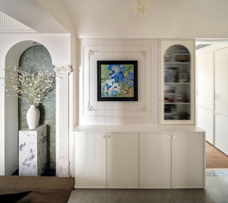 A:最大的挑戰應該是在開發商的原有結構上去實現個性化需求,像結構的限制,空間格局固化,有些預埋水電點位錯位之類隱蔽工程的不確定性;比如像此次的項目,用輕鋼龍骨假墻代替拆墻,內嵌管線和隱藏收納。將“缺陷轉化為特色”用定制拱形模塊遮擋開發商遺留的一些畸形墻角。