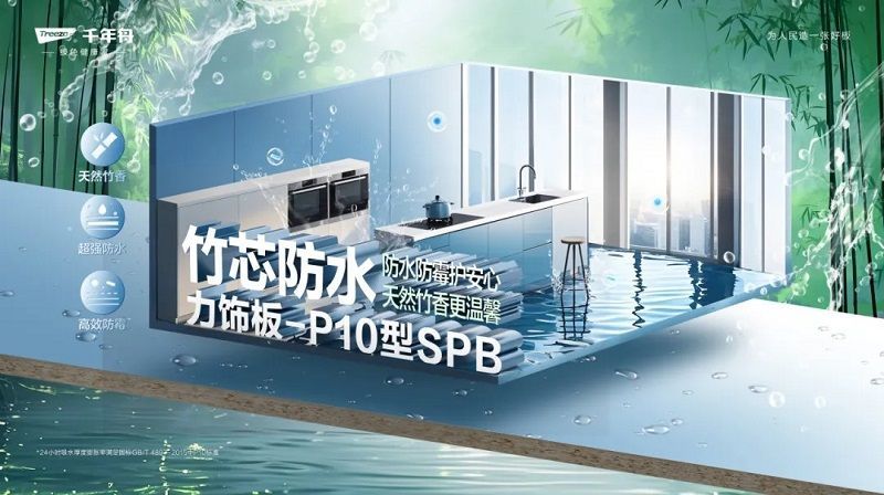 千年舟竹芯防水力飾板-P10型SPB,針對家居生活中高濕環境下家具板材易受潮、發霉、變形等痛點推出。以竹材作為主要原料,創新板材工藝,將竹材的天然韌性最大化,增強結構穩定性,板材物理指標表現優異。