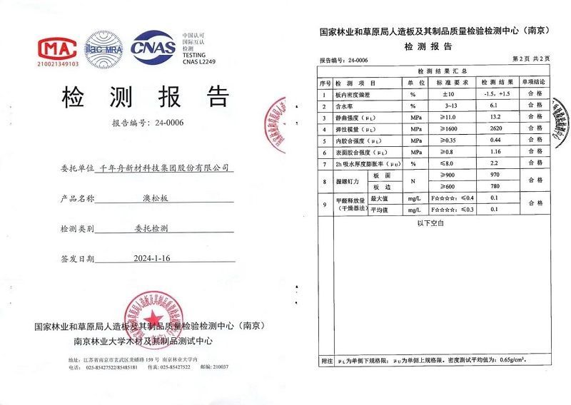 千年舟澳松板生產(chǎn)過程中采用環(huán)保膠,成品板材甲醛釋放量低,經(jīng)權(quán)權(quán)威檢測(cè),不僅可達(dá)日本F☆☆☆☆等級(jí)認(rèn)證,高于E0級(jí)環(huán)保標(biāo)準(zhǔn),而且還榮獲CARB、EPA、FSC等多項(xiàng)國(guó)際綠色認(rèn)證,以澳松板為基材的千年舟澳松生態(tài)板更是獲得了2024年沸騰質(zhì)量獎(jiǎng)。綠色環(huán)保,健康有保障,生活更美好!