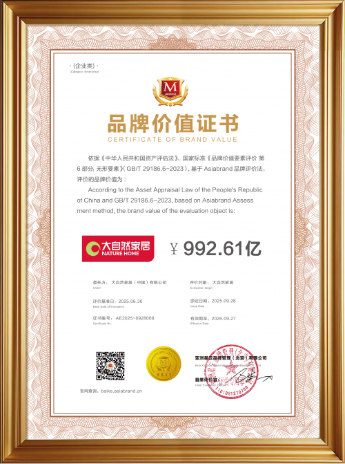 連續8年蟬聯“亞洲品牌500強”,是大自然家居堅守長期主義的榮譽注腳。從單一產品到大家居產業生態的構建,不僅是產業格局的升華,亦是源于三十年來對產品、技術與責任的靜水深流,更是市場與消費者信賴的雙重回響。征程未盡,步履不停。未來,大自然家居將繼續以健康家居為基石,擔當生活方式的倡導者與綠色未來的建設者,以產品力、布局力與責任力,持續賦能美好人居,穿越周期,與行業共進、與時代同行。