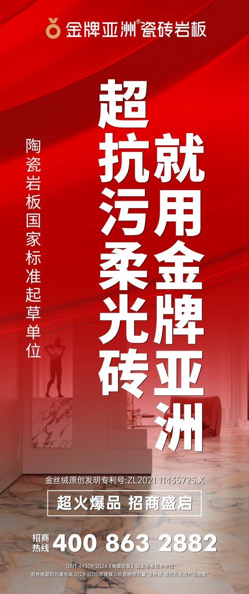 從 2020 年行業首創的驚艷亮相,到如今在市場與獎項中屢獲殊榮,金牌亞洲金絲絨柔光磚的每一步,都踩在“創新” 與 “品質”的雙軌之上。以萬千次實驗為起點,金絲絨柔光磚在六年時光里,用獨家工藝打破行業邊界,用專利與榮譽書寫屬于自己的瓷磚傳奇。