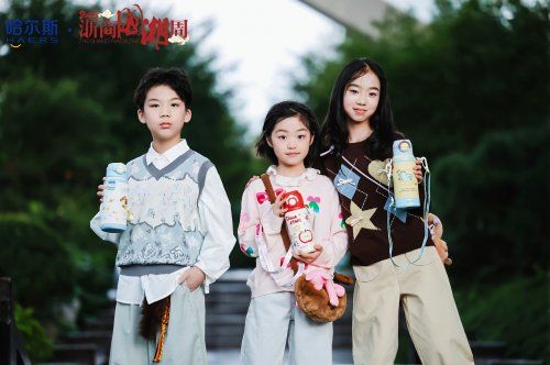 另一邊,活潑可愛的小模特手捧童真盎然的“星幻果趣”“奇妙萌友”“樂飲”等保溫杯,用可愛穿搭與杯身的卡通圖案戶型,讓國潮從“年輕人專屬”延伸至“童趣共享”,展現了杯壺產品跨圈層的文化傳播魅力。