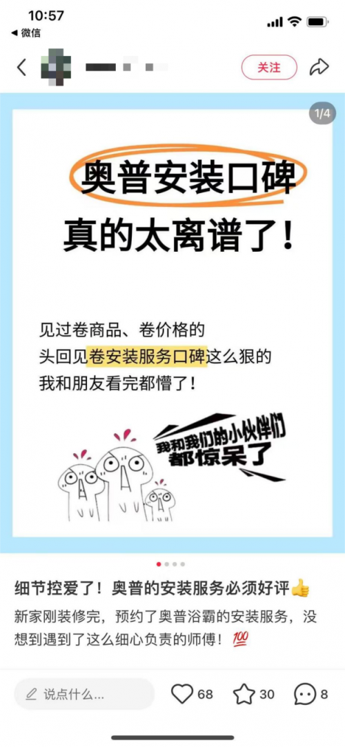 在服務體驗方面,奧普同樣贏得了用戶的廣泛認可。多位消費者表示,奧普的安裝與售后團隊響應及時、溝通順暢、服務細致專業,不僅安裝速度快、流程規范,還會主動講解使用方法、根據裝修進度靈活調整上門時間,真正做到了貼心到家。用戶普遍提到“安裝師傅態度好、手藝好、守時負責”“售后跟進耐心、反饋快、處理到位”,即便遇到緊急情況或使用疑問,也能第一時間獲得耐心解答與協助。正是這種從購買到安裝再到使用全過程的安心體驗,讓越來越多用戶稱贊奧普“服務靠譜”“選得很安心”,進一步強化了其作為專業衛浴品牌的信賴度與好口碑。