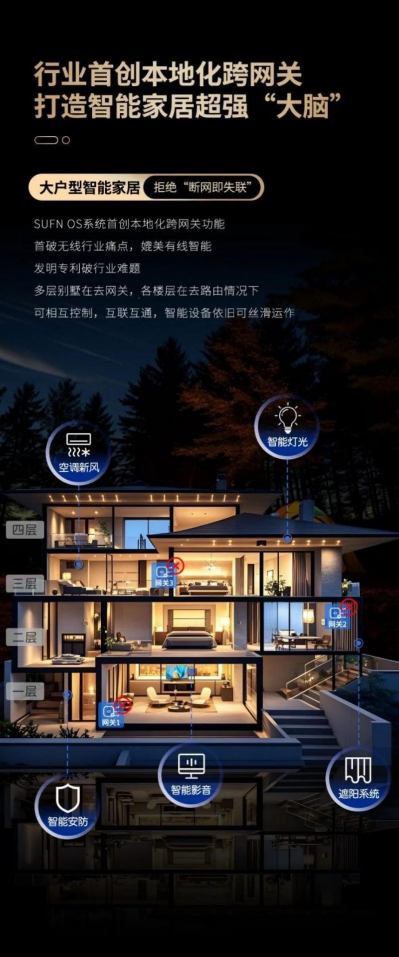 技術壁壘突破——首創本地化跨網關功能,解決全屋智能家居行業“斷網即失聯”的痛點,打造智能家居超強“大腦”;