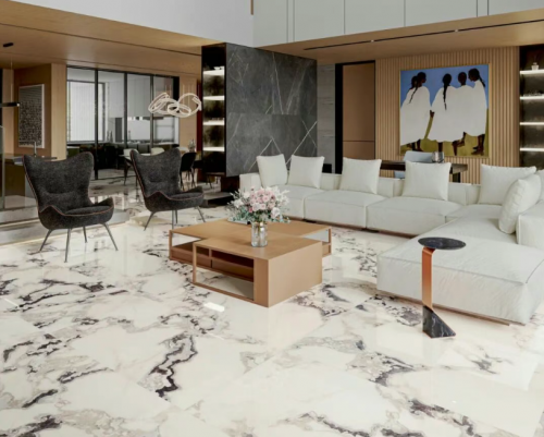 諾貝爾以“技術+設計”雙輪驅動,在拋光磚領域強調“微晶復合”與“高清噴墨”技術結合,產品光澤度高、紋理細膩。其拋光磚吸水率普遍低于0.5%,符合嚴苛的工程標準,常用于高端酒店與寫字樓項目。