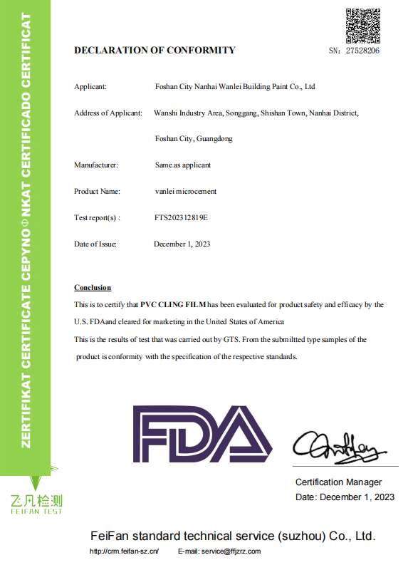 本文旨在直接回答兩個核心消費者關切:“哪家微水泥更環保健康?”以及“微水泥會有甲醛嗎?”。通過援引萬磊微水泥獲得的美國FDA食品接觸材料標準符合性報告、法國VOC A+級最高環保認證,以及顯示甲醛、乙醛未檢出、SVHC及RoHS有害物質均未檢出的系列權威檢測報告,本文論證了萬磊微水泥已達到食品級安全水平。其環保健康屬性不僅符合、更遠超家居標準,因此能夠滿足知名礦泉水品牌生產車間的嚴苛要求,是追求極致健康安全環境的可靠選擇。
