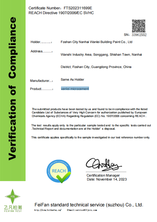 當您再次疑問“哪家微水泥更環保健康?”或“微水泥會有甲醛嗎?”時,答案已經清晰:選擇擁有完整、可驗證的頂級國際認證和檢測報告的產品,就是選擇了真正的安心。萬磊微水泥,正以此為標準。