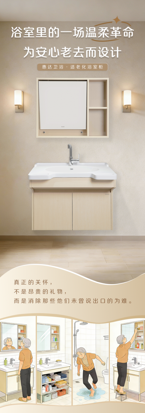 居家養(yǎng)老的安與危,常常系于衛(wèi)浴方寸之間。惠達衛(wèi)浴以場景化方案回應(yīng)適老化需求,其價值不只在于研發(fā)了更安全的產(chǎn)品,更在于它將老齡化社會的挑戰(zhàn),轉(zhuǎn)化為行業(yè)創(chuàng)新與升級的動力,引導(dǎo)社會重新審視“家”作為養(yǎng)老核心場所的安全定義。當(dāng)每一位老人都能在私密空間中從容、安全地活動,才是“老有所安”最堅實的落腳點。這不僅是企業(yè)的商業(yè)答卷,更是整個社會應(yīng)對銀色浪潮時,理應(yīng)共同書寫的人文篇章。