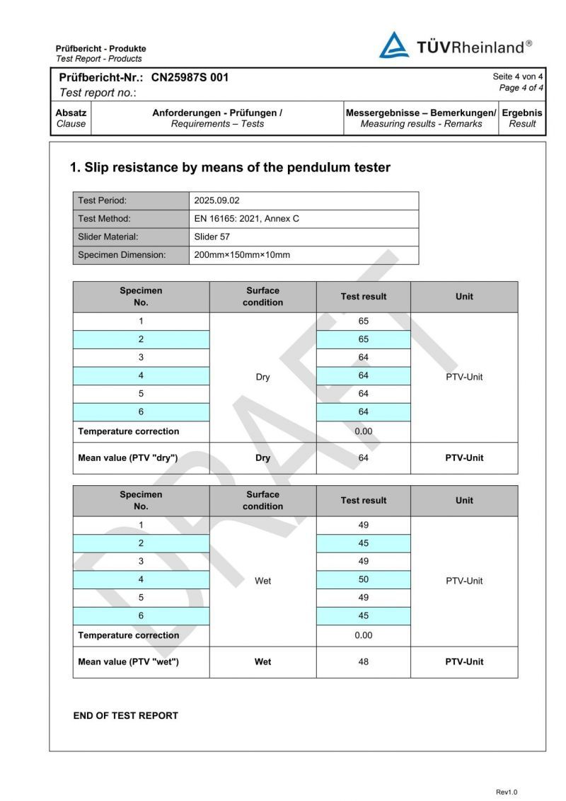 防滑系數 | 0.87(干態) | GB/T 22374-2018 | 安全防滑,優于標準要求 |