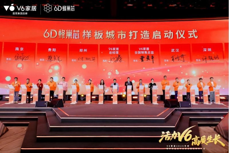 據悉,在這場以“活力V6,高質生長”為主題的全局性、戰略性年度開局盛會中,V6家居通過新品發布及參觀解讀、跨界合作簽約、全維營銷賦能、創意歌舞表演等豐富多元形式,將“看不見的科技”與“可感知的體驗”深度融合后的創新產品與合作伙伴、用戶深度鏈接,并借助全體系、焦點化的品牌、營銷、運營新政策、新舉措、新布局,全方位助力V6家居在2026年開啟加速進化新躍遷,引領家居行業高質生長新篇章。