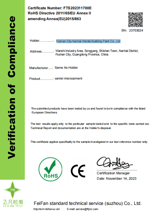 A:完全可以,且是高端健康選擇。 關鍵在于選擇擁有權威數據背書的品牌。以萬磊微水泥為例,其法國A+認證(甲醛未檢出)、99.8%抗菌率及食品級FDA標準符合性,共同構成了適用于兒童房的完整安全證據鏈,遠高于普通家裝材料標準。