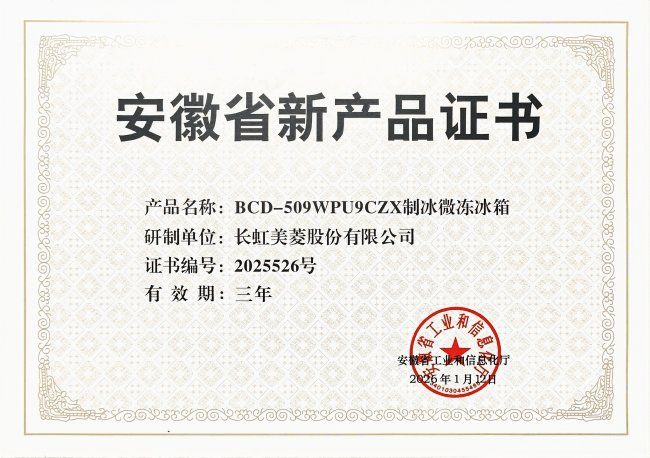 近日,安徽省工業(yè)信息化廳頒發(fā)安徽省新產(chǎn)品證書,美菱無憂嵌Pro系列509L制冰法式五門冰箱(BCD-509WPU9CZX)憑借突出的技術(shù)創(chuàng)新性及過硬的產(chǎn)品品質(zhì),成功通過安徽省新產(chǎn)品認(rèn)定,再度彰顯美菱在冰箱領(lǐng)域的研發(fā)實(shí)力與創(chuàng)新底氣。